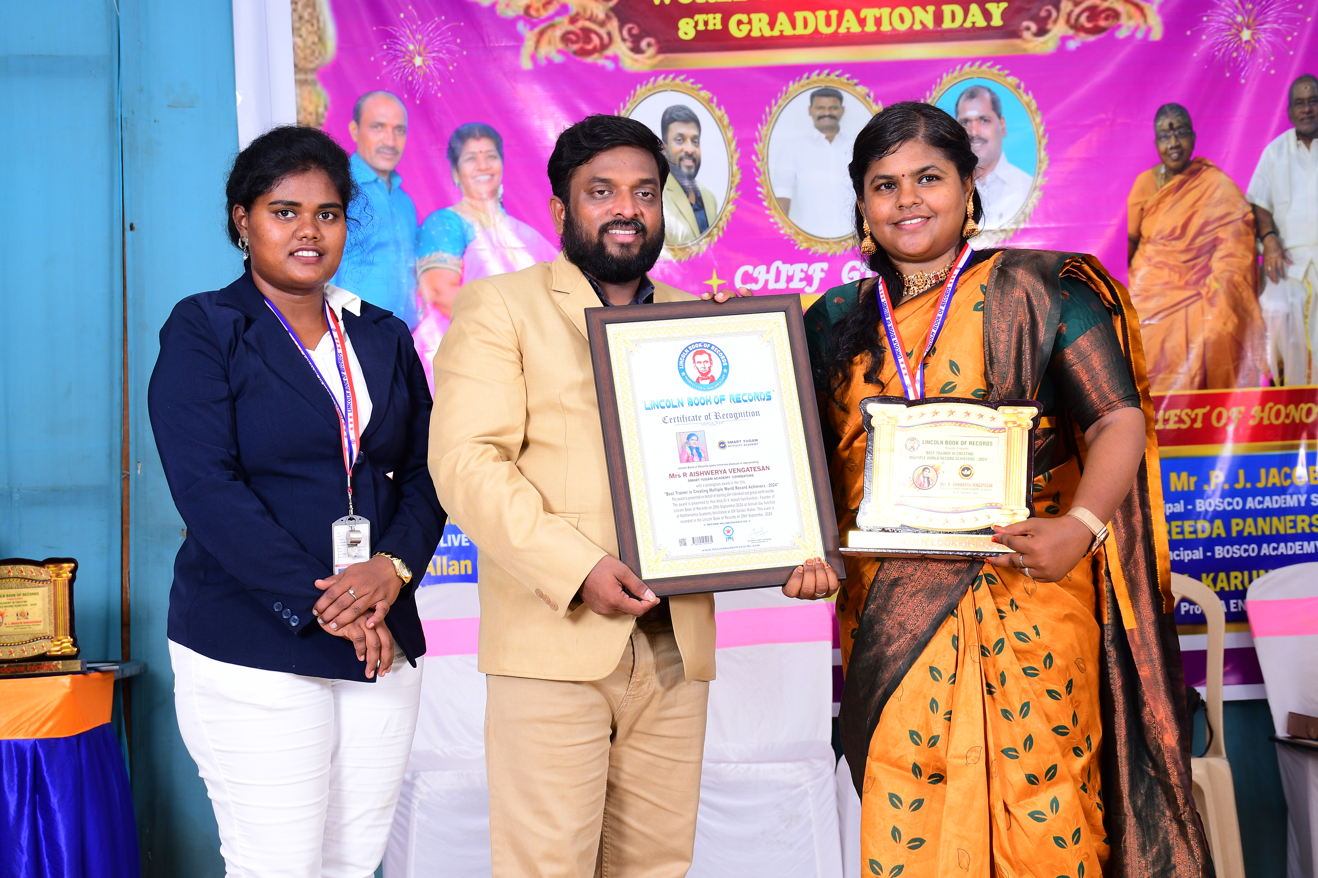 Lincoln Book of Records takes immense pleasure in appreciating Ashvath Mahakrama s/o Nagaraja Nellore and Sowmya Sabada for achieving his world record in the title - "World youngest child recite the exponential power cycle of numbers 1-10 in 3 minutes. 38 seconds" The record was trained by Mrs Aishwerya R - Proprietrix of Smart Yugam Academy. The event was conducted on 29th September,2024 felicitated at GM Golden Mahal .This event is recorded in the Lincoln Book of Records on 29th September, 2024.