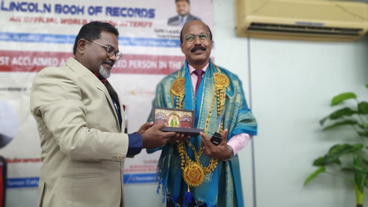 This certificate is proudly presented to Dr.Sathiaseelan Subramaniam born on 5th Dec,1974. He is certified as one of the most accomplished and award winning individuals in the world. This record is registered in the Lincoln Book of Records on 01.02.2022 as a world record. Malaysia.